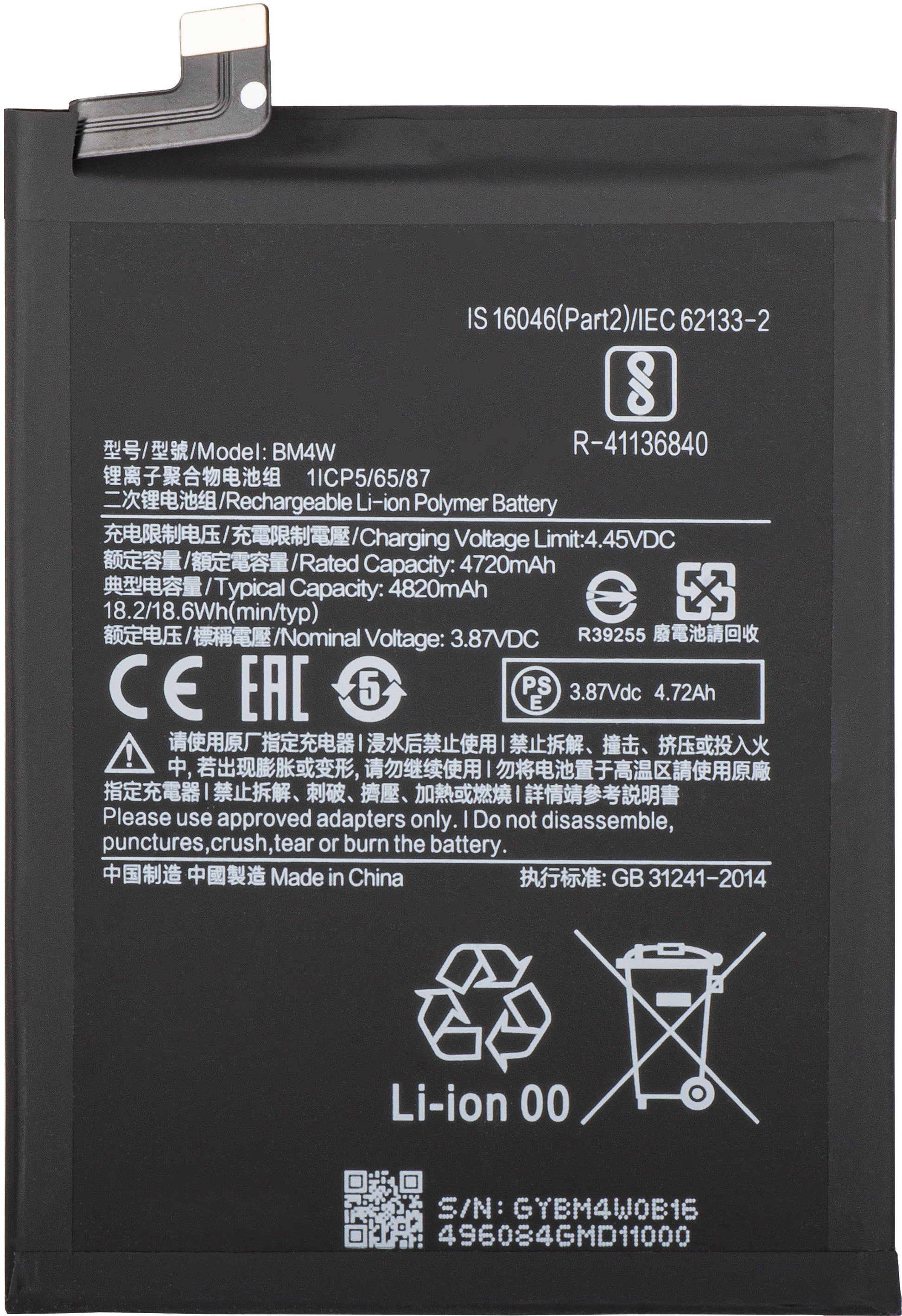 Battery for Xiaomi Mi 10T Lite 5G, BM4W