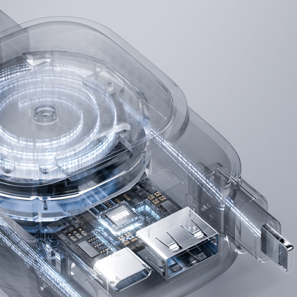 • The integrated retractable cable extends up to 80 cm, and with a light pull, it automatically retracts into the charger, keeping the car's console neat and easy to use.