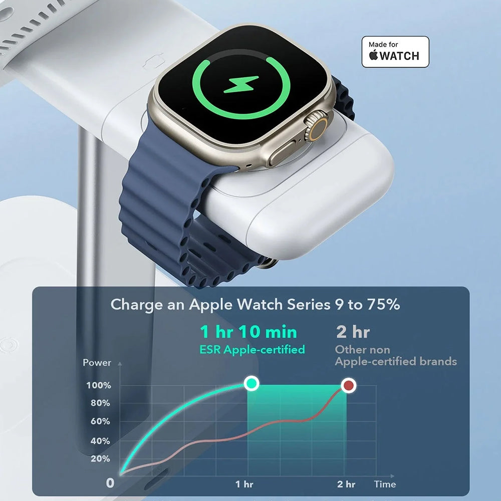 The ESR CryoBoost 3in1 wireless network charger offers you a premium charging experience for Apple devices, combining elegant design