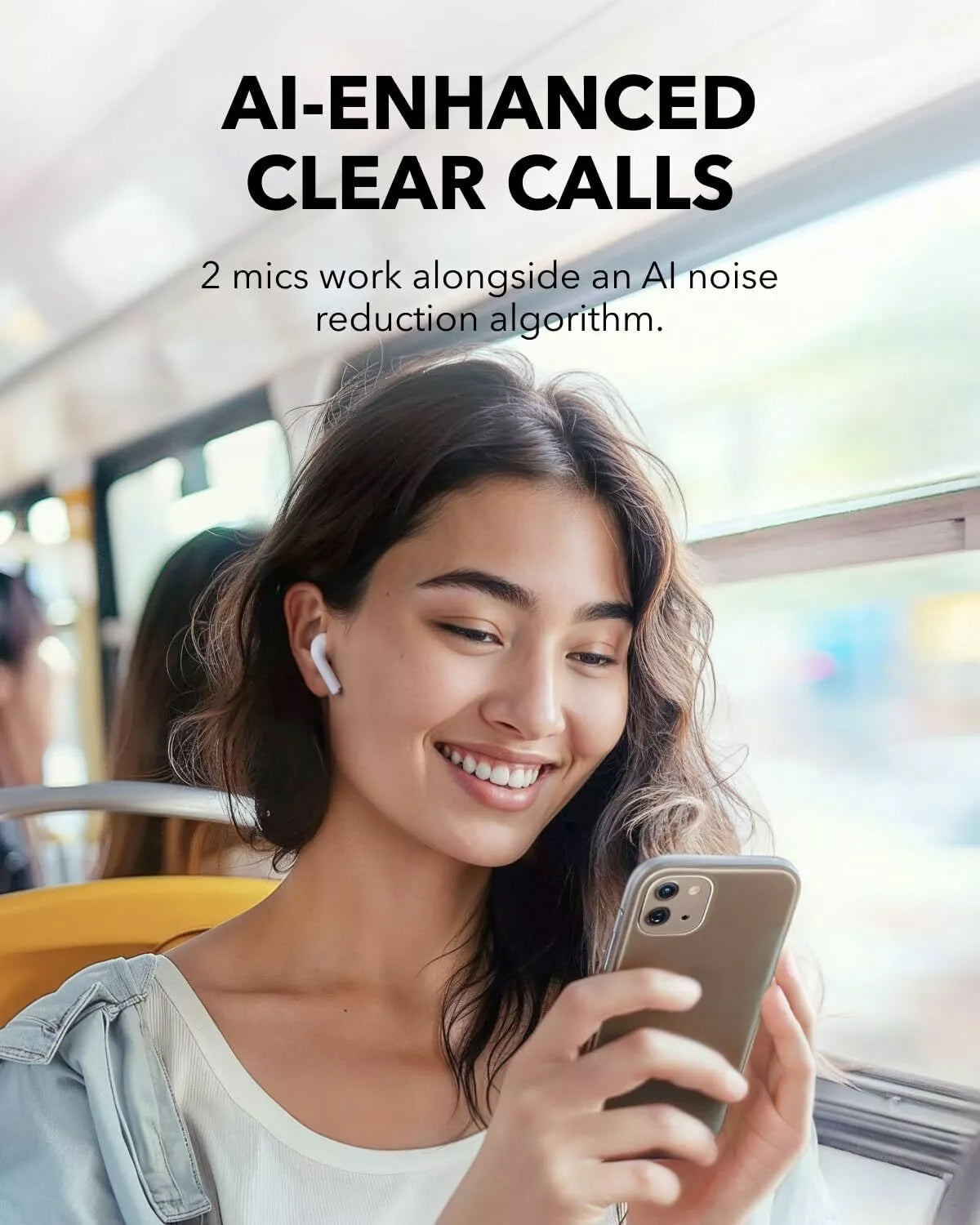 AI noise reduction technology and dual ENC microphones guarantee clear calls, even in noisy environments. Through the dedicated app, users