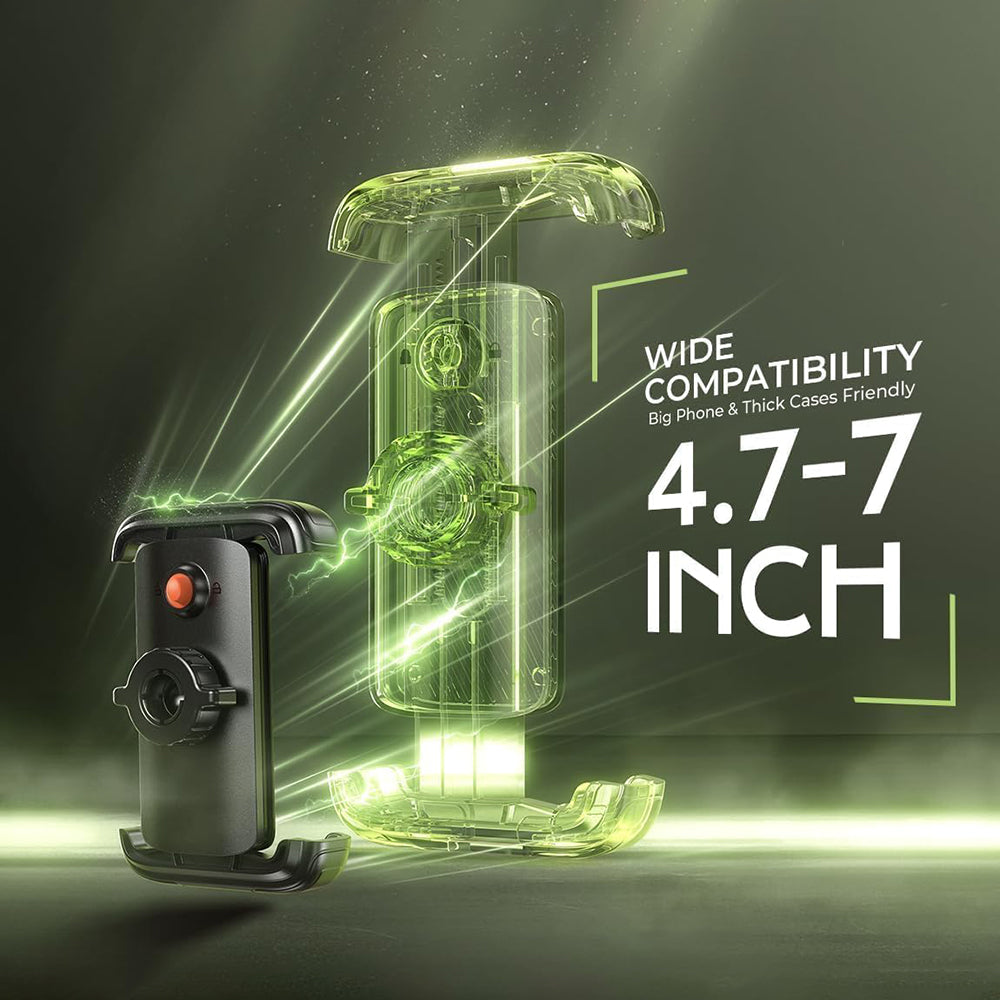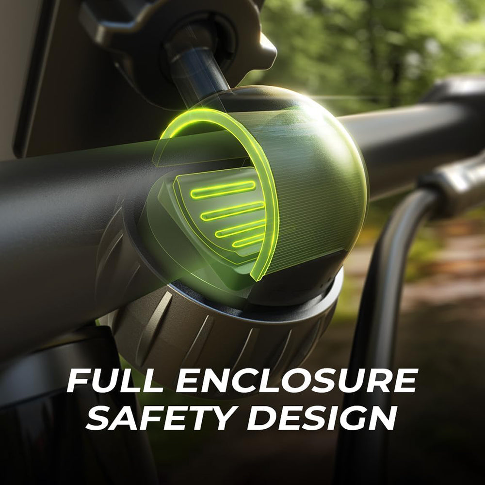 This holder ensures an ultra-stable grip even on rough terrain or at high speeds. The locking mechanism eliminates the risk of slipping or dropping the phone.