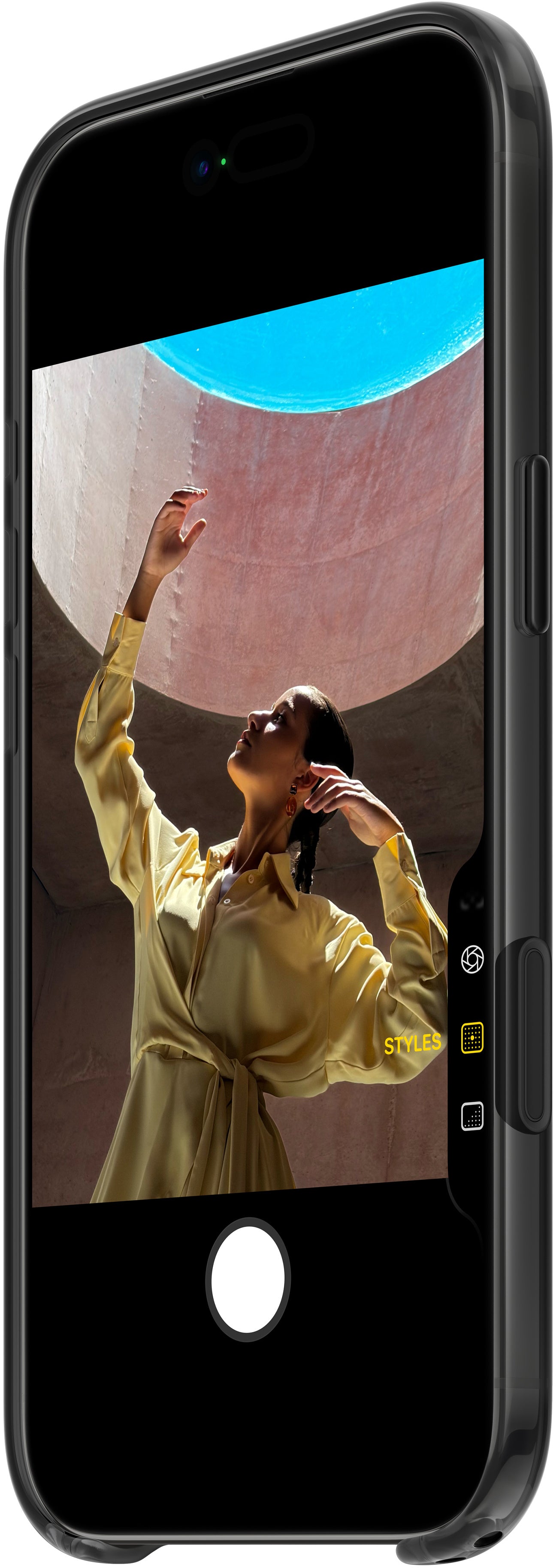 Compatible with Camera Control, the case integrates a conductive layer and a sapphire crystal that accurately transmit finger movements,