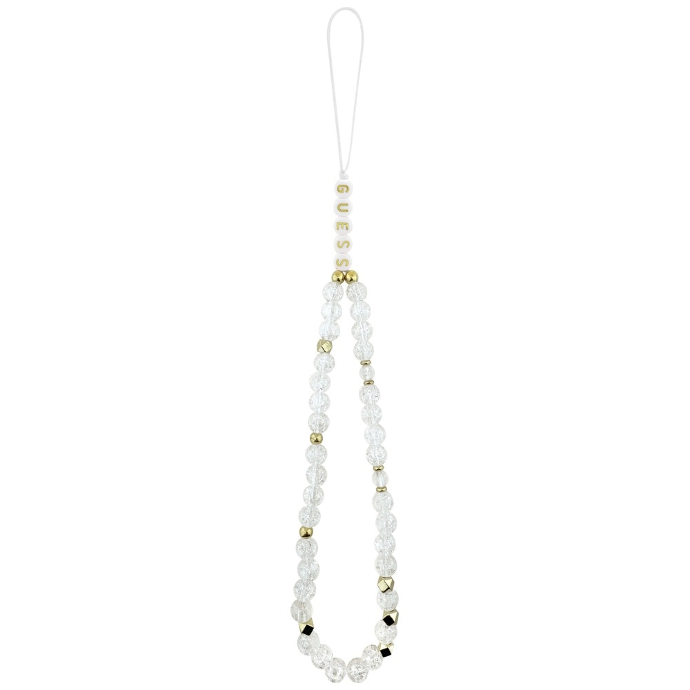 MagSafe Case for Apple iPhone 17, Guess, IML Flowers with Pearl Strap, White