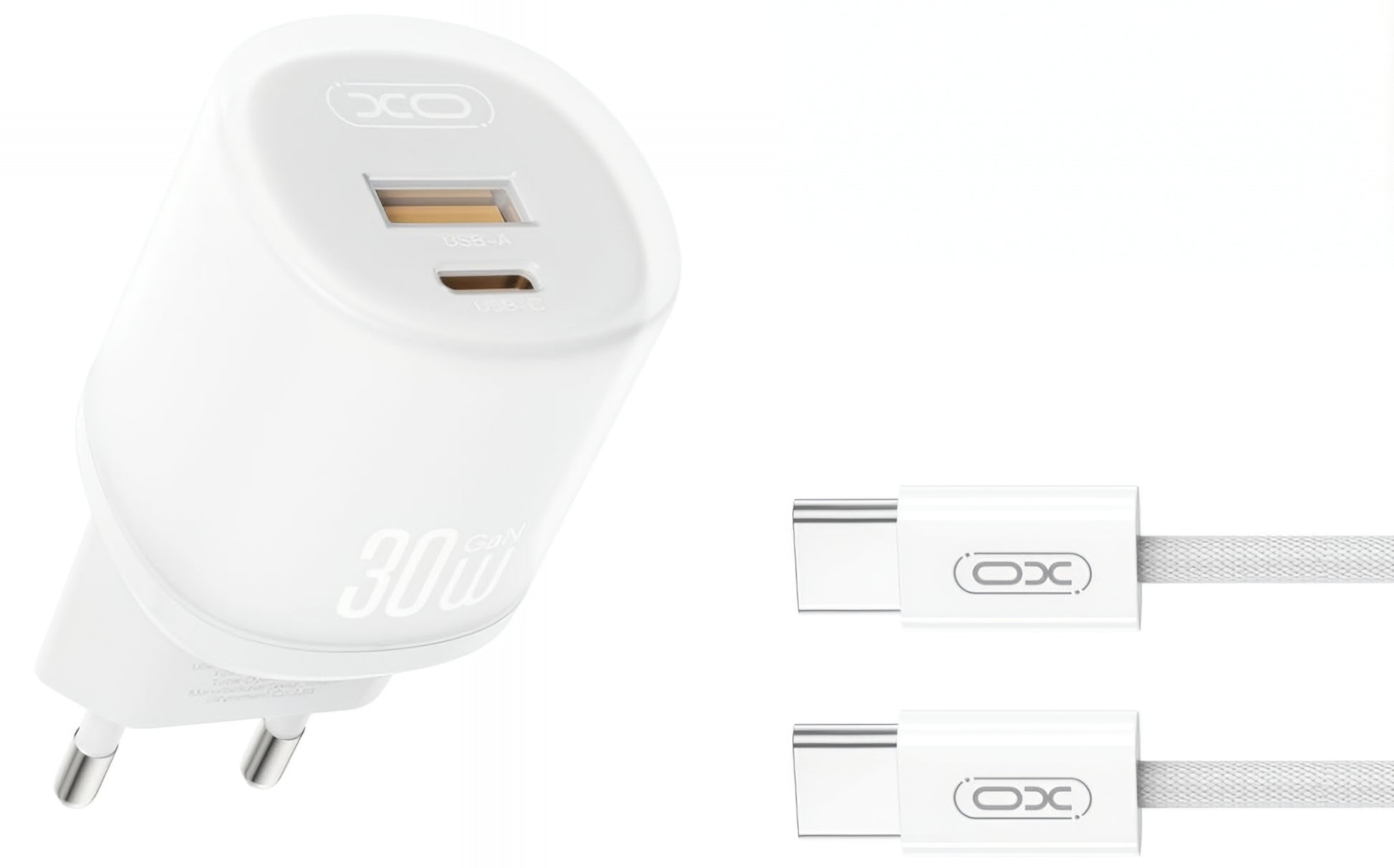 Network Charger with USB-C Cable XO Design L151, 30W, 3A, 1 x USB-A - 1 x USB-C, White