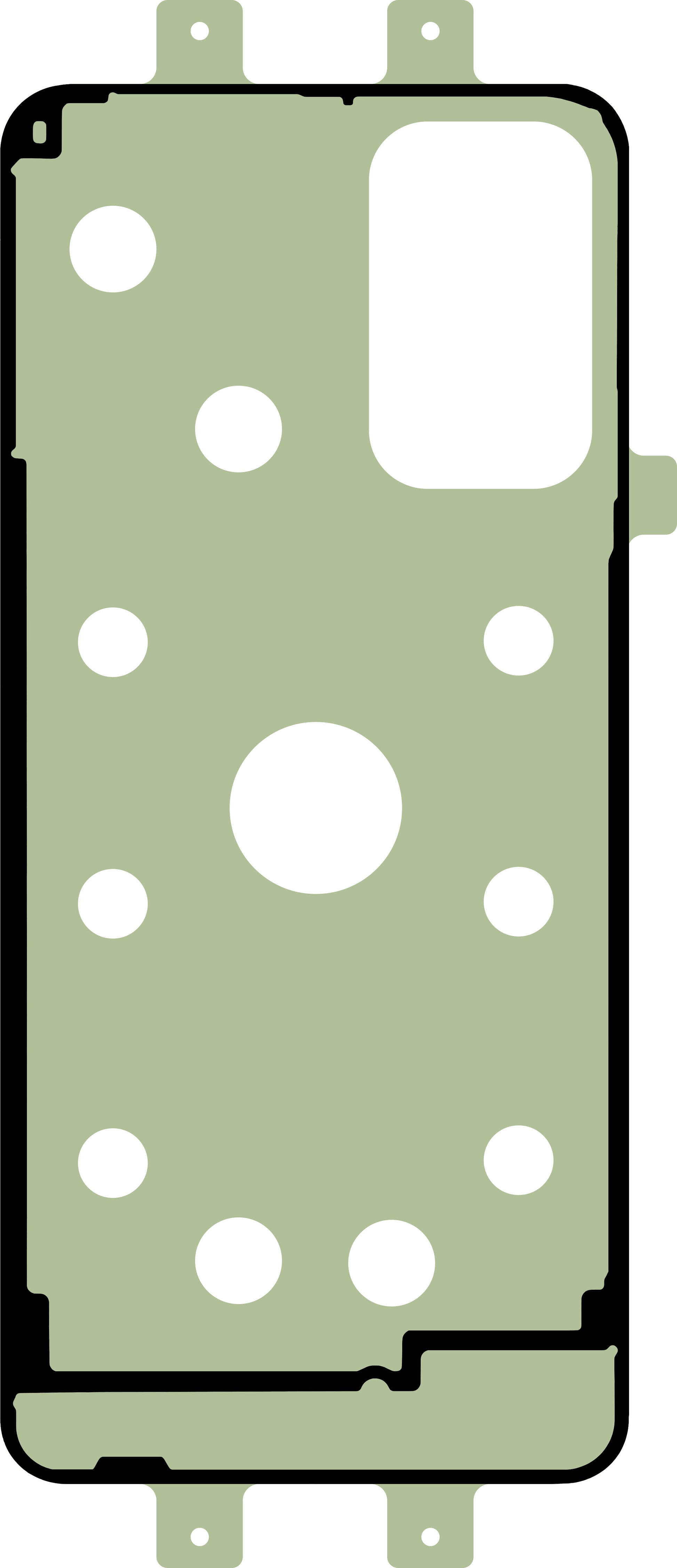 Adhesive designed for securing the phone frame cover.