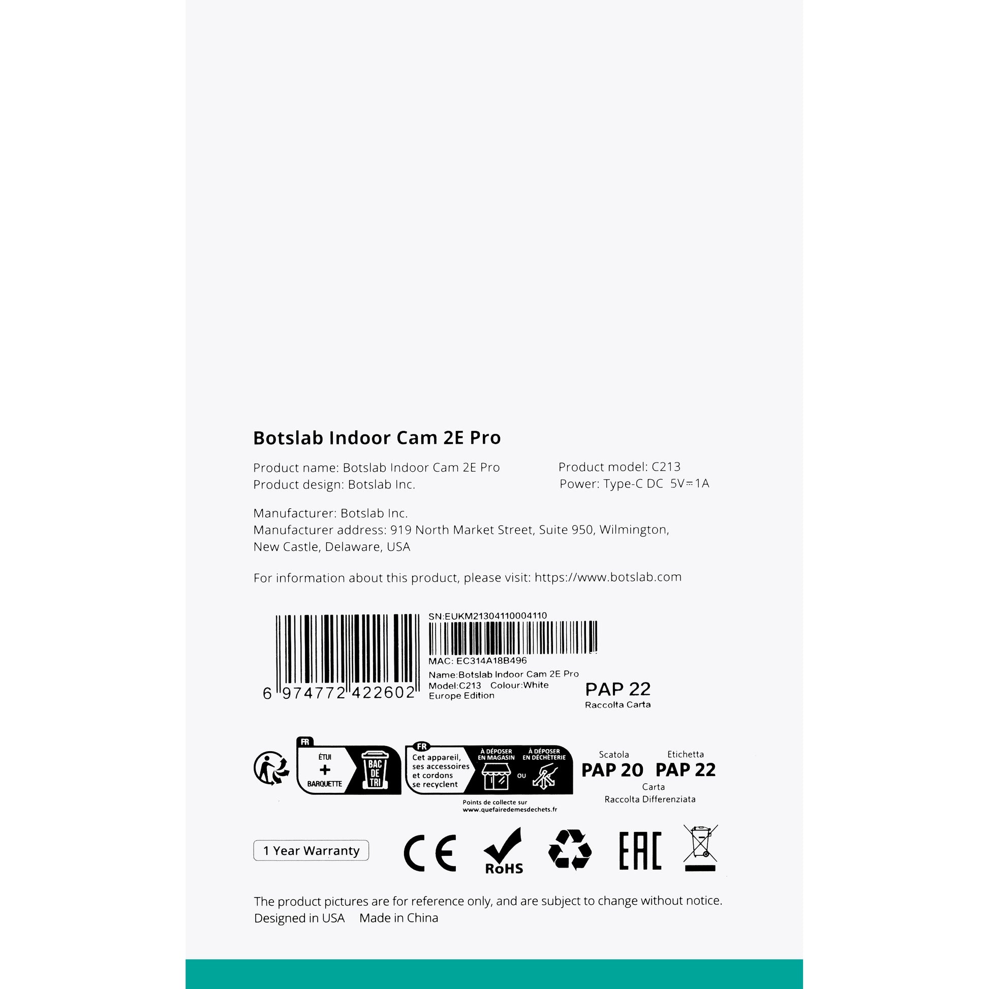 Surveillance Camera Botslab 2E Pro C213, Wi-Fi, 2K, 2K, Indoor