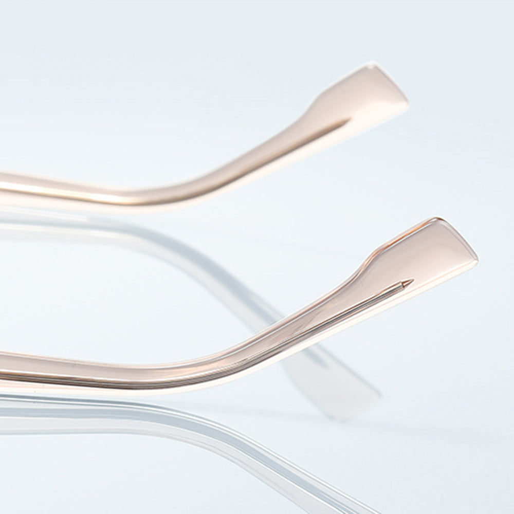 • The frame sits delicately, yet securely, following the line of the face without exerting pressure on the temples or nose.