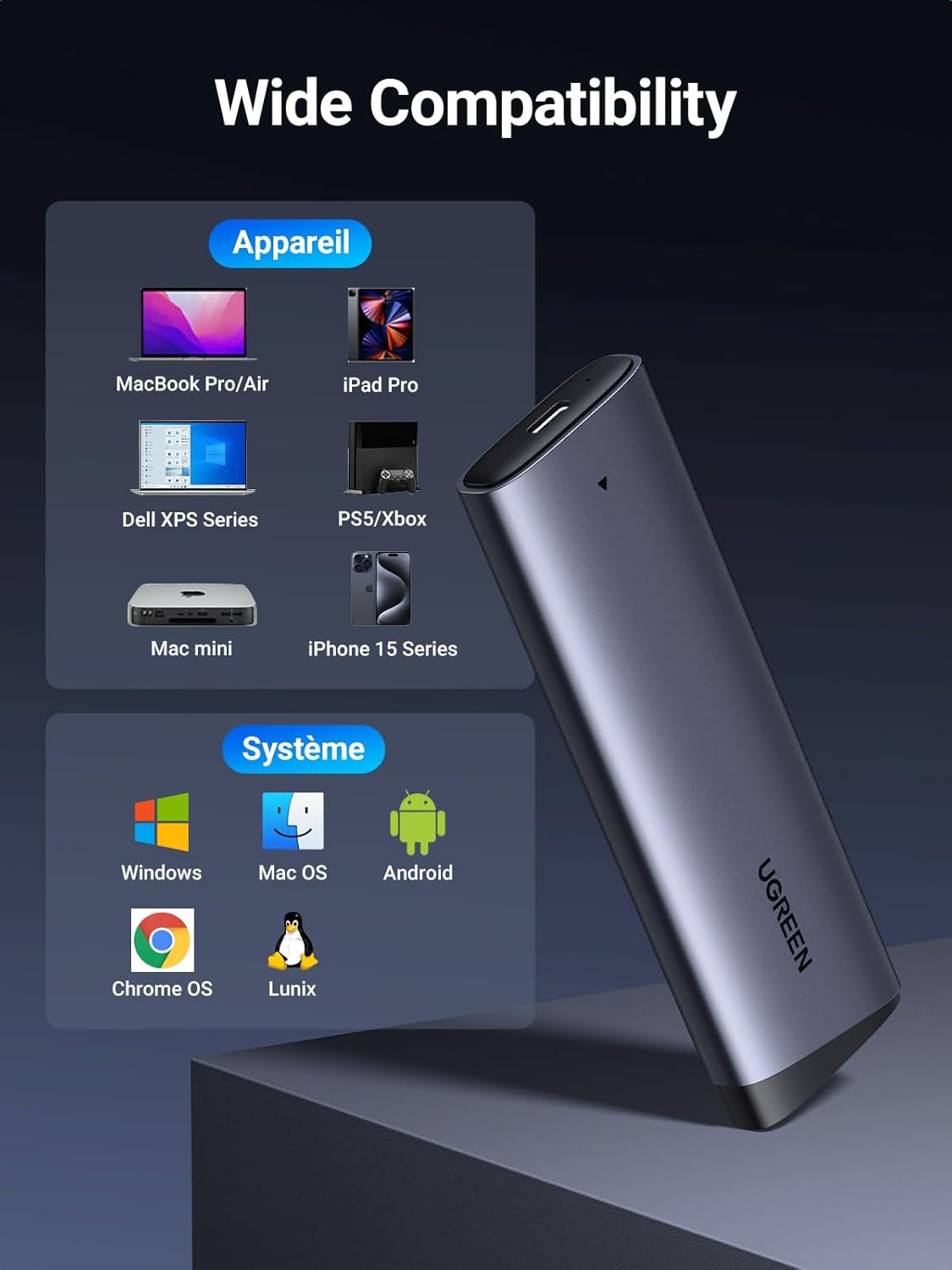 The UGREEN CM767 external rack is the ideal solution for expanding your device's storage capacity.