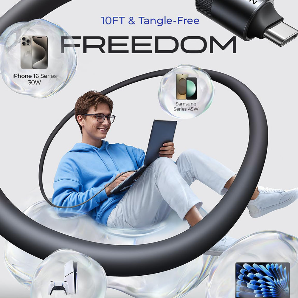 • Made from premium food-grade silicone, the cable offers superior flexibility and a pleasant touch sensation. Additionally, the reinforced structure extends the lifespan to over 50,000 bends.