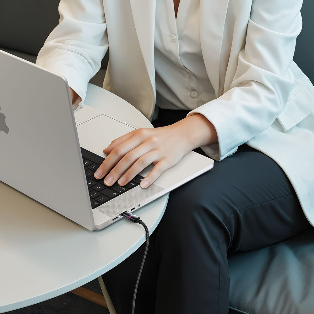 • The cable is equipped with multicolor LED lighting that activates during charging, providing a pleasant visual effect and allowing easy identification of the power status.