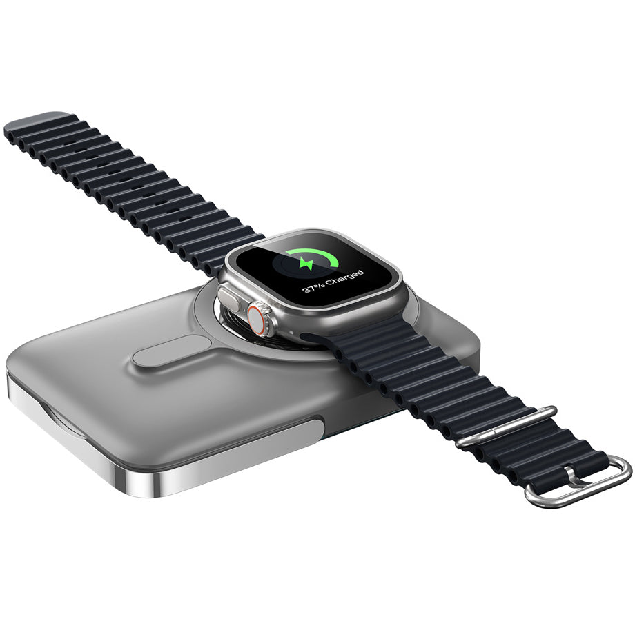 WiWu Wi-P018 is a 3-in-1 wireless external battery, perfect for simultaneously charging your mobile phone, watch, and headphones.
